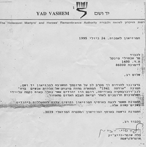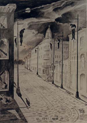 Одесса, ноябрь 1941 г. Бумага, акварель, 40x30 см Картина находится в Музее Яд Ва-Шем, Иерусалим Письмо музея от 24 июля 1995г.