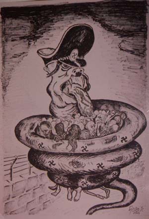 Портрет нацизма Бумага, тушь, 45x30 см Картина передана в подарок еврейской организации г. Киева | ||